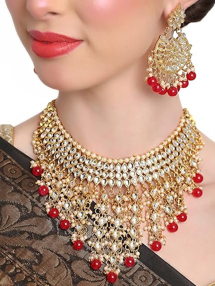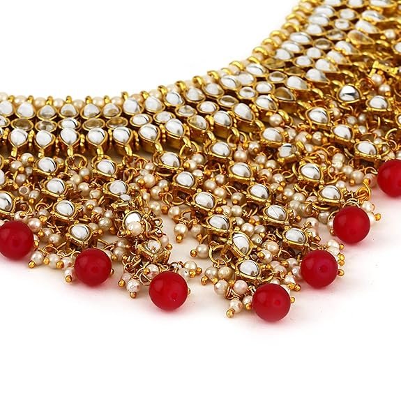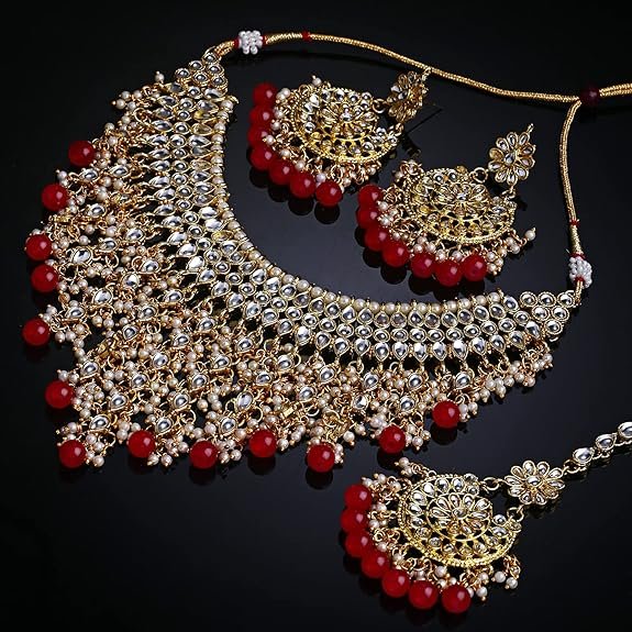 Shining Diva presents this latest design jewellery set stylish Gold Plated Kundan Choker Necklace Set with earrings and Maang Tikka. This fancy bridal wedding party wear bridal choker neckless Jewellery set for girls and women is made of Kundan which looks stylish and goes perfect with any attire. This latest design kundans jewellery set for women is perfectly suited for bridal wedding or party wear. Shining Diva is a well known brand across fashion jewellery sector. Shining Diva has huge collection of latest statement necklace jewellery, traditional necklace set, pendant set and other jewellery accessories which includes fancy bangles for women, wedding bangles, ear cuffs, traditional bangles kada, neck choker, fashion party wear necklace for girls and jhumki jhumka earrings. Shining Diva is pioneer of Imitation jewellery and designer pearl necklace set for women and American diamond hangings fancy party wear stylish Earrings. Shining Diva Fashion and Traditional jewellery give true value for your money.